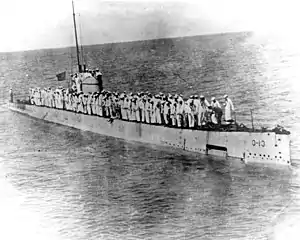 USS O-13 (SS-74) was an O-class submarine of the United States Navy. Her keel was laid down on 6 March 1916 by the Lake Torpedo Boat Company in Bridgeport, Connecticut.