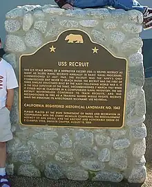 Advancing the Preservation and Reuse of Maryland's Historic Complexes (PDF) (Report). The Maryland Department of Planning. January 28, 2020. p. 24. Retrieved November 20, 2021. - ↑ "USS Recruit". Office of Historic Preservation. California State Parks. Retrieved November 20, 2021.