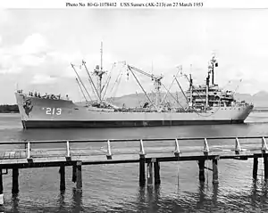USS Sussex (AK-213) was an Alamosa-class cargo ship that was constructed for the US Navy during the closing period of World War II. She was retained by the Navy for post-war service, including that in the Korean War theatre where she earned three battle stars and then returned home for deactivation.