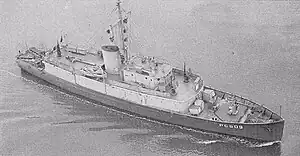 ![]() USS PC-509 around 1943, the year in which she was renamed USS Valiant (PYc-51). | |