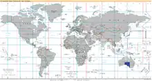 UTC+10:30: blue (January), orange (July), yellow (year-round), light blue (sea areas)