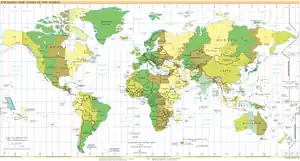 At the end of 29 December 2011 (UTC−10:00), Samoa advanced its standard time from UTC−11:00 to UTC+13:00 (and its daylight saving time from UTC−10:00 to UTC+14:00), essentially moving the international date line to the other side of the country.[3][4]