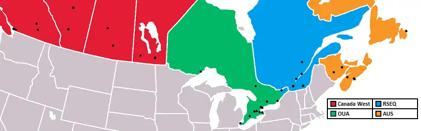 - Note: The Ottawa Gee-Gees moved from the OUA to the RSEQ starting with the 2016-17 season.[35]