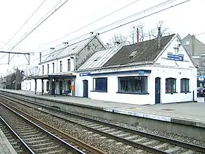 Uccle-Calevoet railway station (French: Gare d'Uccle-Calevoet) or Ukkel-Kalevoet railway station (Dutch: Station Ukkel-Kalevoet) is a railway station in the municipality of Uccle in Brussels, Belgium. The station is operated by the National Railway Company of Belgium (NMBS/SNCB) and located on line 124, between Uccle-Stalle and Linkebeek railway stations.[1] It is named after the Calevoet/Kalevoet neighbourhood in Uccle.