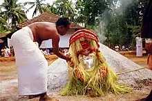 Being the daughter of Agni, the playful Uchitta Theyyam sits on fire, lies down and plays with embers.[1]