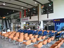 Udon Thani International Airport (Thai: ท่าอากาศยานอุดรธานี) (IATA: UTH, ICAO: VTUD) is an international airport near the city of Udon Thani (Thai: อุดรธานี also Udorn Thanee) in Udon Thani Province in the northeast region of Thailand. It is approximately 450 kilometres (280 mi) northeast of Bangkok. It currently has domestic flights to and from Bangkok (Suvarnabhumi and Don Mueang), Chiang Mai (on Nok Air), Hat Yai (on Thai Lion Air), Phuket (on Thai AirAsia), Rayong (on Thai AirAsia), and Ubon Ratchathani (on Nok Air). In 2006, the airport had 677,411 passengers movements and 1,558 MT cargo movements. In 2013, the airport handled 1,325,305 passengers.[1] In 2015, it handled 2,213,689 passengers and 3,678 tonnes of freight.[2] It has been managed by the Department of Airports (DOA).
