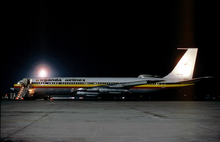 Uganda Airlines was founded as a subsidiary of the government-owned Uganda Development Corporation (UDC) in May 1976 as a replacement of the services previously operated by East African Airways.[4] It commenced operations in 1977, when Uganda Aviation Services (UAS), set up by British United Airways in 1965 but then a UDC subsidiary, was absorbed by Uganda Airlines, taking over the UAS route network.[4][5][6] Following delivery of the first Boeing 707-320C in the late 1970s, new routes to Brussels, London and Rome were inaugurated. A second Boeing 707-320C entered the fleet in 1981. That year, new routes to Cairo, Cologne and Dubai were launched, followed by Dar es Salaam, Kilimanjaro and Nairobi in subsequent years.[7]