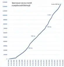 - 1 2 "Wikistats - Statistics For Wikimedia Projects". stats.wikimedia.org. p. Monthly overview for Wikipedia - Ukrainian. Retrieved November 24, 2022.