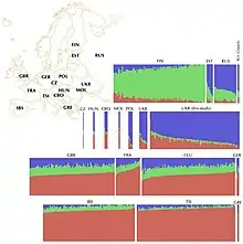 - ↑ Kushniarevich A, Utevska O (2015) "Genetic Heritage of the Balto-Slavic Speaking Populations: A Synthesis of Autosomal, Mitochondrial and Y-Chromosomal Data"