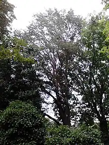 A large specimen stands in Warriston Cemetery, Edinburgh (middle level). Six of the seven mature specimens growing there were felled in the 1990s; the seventh, near the east gate, remains healthy (2019) (height 20 m, bole-girth 2.2 m; labelled 03159 CEM). (Ignorance of this cultivar may have occasioned unnecessary felling: the tree's naturally upcurled, greyish foliage in late summer may be mistaken for foliage affected by Dutch elm disease.) A vigorous sucker in the cemetery has now become an established tree. In the Netherlands an old specimen, supplied by De Reebock nurseries in Oudenaarde, Belgium, stood until c.2010 in the Burgemeester Mijnlieffstraat in the town of Anna Paulowna.[38] In Australia the Avenue of Honour at Wallan, Victoria, was planted solely with 'Purpurascens' in the early 1920s, most of which survive,[39] and the cultivar was also included in the Avenue of Honour in Ballarat in 1918.[40] A large old purple-flushing elm stands in the gardens of the Hedvig Eleonora Church, Östermalm, Stockholm, with foliage appearing to match the hybrid purple elms in Edinburgh and Brighton.[41][42][43]