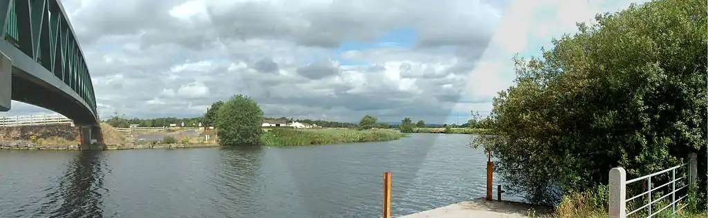 The original plans were to embank the Tall River and the Callan River, which joined to the south of Clonmain and flowed into the Blackwater below Charlemont bridge. This aspect of the project was reworked, and a new straight cut was made from a point on the Tall River to the north of Clonmain, crossing Sir William Verner's bog, and rejoining the Blackwater just above Verner's Bridge, some 5 miles (8 km) below the original confluence. This had the advantage that under flood conditions, the water level in the Blackwater was from 4 to 5 feet (1.2 to 1.5 m) lower than that further upstream. The channel below Verner's Bridge was also considerably wider, and so could better cope with the volumes of water discharged by the two tributaries.[8]