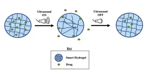 - 1 2 3 4 5 Sun, Yi; Chen, Le-Gao; Fan, Xiao-Ming; Pang, Jian-Liang (2022-10-22). "Ultrasound Responsive Smart Implantable Hydrogels for Targeted Delivery of Drugs: Reviewing Current Practices". International Journal of Nanomedicine. 17: 5001–5026. doi:10.2147/IJN.S374247. PMC 9586127. PMID 36275483.