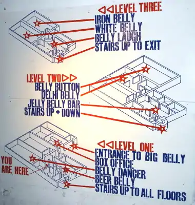 In 2001, "Underbelly Limited" and "By Popular Demand Productions Limited" were set up to turn the Underbelly into a professional venue with a number of performance spaces and a wide range of productions. The venue was set up with performance spaces in the Iron Belly, White Belly and Big Belly. The Belly Laugh (then named the Belly Bar) was also used for late night cabaret as well as the venue's second bar. Space downstairs which is now used for Belly Dance was used to exhibit a film installation by Nick Hornby.