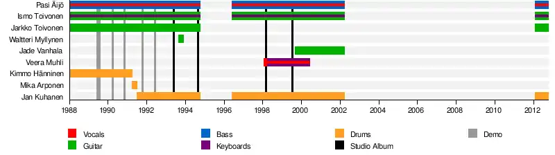 - Ismo Toivonen – guitar, keyboards (1988-1994, 1996–2002, 2012)