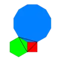 Wythoffian tessellations can be defined by a vertex figure. For 2-dimensional tilings, they can be given by a vertex configuration listing the sequence of faces around every vertex. For example, 4.4.4.4 represents a regular tessellation, a square tiling, with 4 squares around each vertex. In general an n-dimensional uniform tessellation vertex figures are define by an (n–1)-polytope with edges labeled with integers, representing the number of sides of the polygonal face at each edge radiating from the vertex.