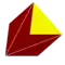 The edges are fully truncated into single points. The polyhedron now has the combined faces of the parent and dual. Polyhedra are named by the number of sides of the two regular forms: {p,q} and {q,p}, like cuboctahedron for r{4,3} between a cube and octahedron. | |