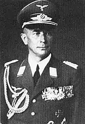 The Luftwaffe was the air force of Nazi Germany prior to and during World War II. Luftwaffe styles of uniform and rank insignia had many unique features between 1935 and 1945. By Hitler's decision on February 26, 1935, the Luftwaffe was to be officially the third branch of the Wehrmacht as of March 1, 1935. The new Luftwaffe was faced with the problem of uniforms, as they wanted a uniform distinct from those of the other two branches of the Wehrmacht (Heer and Kriegsmarine) and also wanted a clear differentiation in dress of military and civilian flyers.
