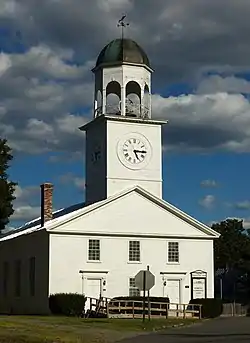 The church was built in 1835, and is one of two surviving 19th-century churches in town (the other is the 1867 Gothic Revival Methodist church). The church was funded by three local congregations, representing Free Will Baptists, Universalists, and Congregationalists. Ownership was shared between these three groups until 1931, when the Congregationalists acquired full ownership of the building. The only significant alterations to the building were the removal of its belfry in 1939 due to deterioration; it was restored in 1982 with plans drafted from historic photographs of the original.[2]