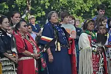 The United Indians of all Tribes Foundation also provides programs such as Indian child welfare services, therapy, and treatment; elder services, including a lunch program; a GED education program; and youth services, including advocacy, substance abuse treatment, and housing for homeless youth. Other programs have included the Ina Maka family program, education and employment services, a child development center, and the ECEAP (Early Childhood Education & Assistance Program) preschool.[8] The foundation also organizes the annual Seafair Indian Days, one of the larger pow-wows in the Northwest, held in conjunction with the city's festival called Seafair. The pow-wow draws tribal members from across the state, Oregon, Idaho, Montana, and Canada.