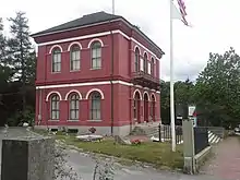 The U.S. Customshouse (now known as the Coast Guard Heritage Museum and the Donald G. Trayser Memorial Museum) is a historic customs house and United States Coast Guard museum on Cobbs Hill in Barnstable, Massachusetts. Built in 1855 to a design by Ammi Young, it was used as a custom house and post office until 1913, continuing to house the post office and other offices until 1958. It was converted into a museum in 1960, and was listed on the National Register of Historic Places in 1975.[1]