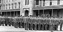 Besides the integration of southern-state and black cadets, the post-war academy also struggled with the issue of hazing. In its first 65 years, hazing was uncommon or non-existent beyond small pranks played upon the incoming freshmen, but took a harsher tone as Civil War veterans began to fill the incoming freshman classes. The upper class cadets saw it as their duty to "teach the plebes their manners."[49] Hazing at the academy entered the national spotlight with the death of former cadet Oscar L. Booz on 3 December 1900. Congressional hearings, which included testimony by cadet Douglas MacArthur, investigated his death and the pattern of freshmen's systemic hazing.[50] When MacArthur returned as superintendent, he made an effort to end the practice of hazing the incoming freshmen by placing Army sergeants in charge of training new cadets during freshman summer.[51] The practice of hazing continued on some levels well into the late 20th century, but is no longer allowed in the present day.[52]