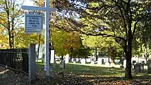 The Unity Burial Ground is a small graveyard located on the southeast end of White Plain in the Nichols section of Trumbull, Connecticut. It is located a few rods north of the site of the first meeting house that was built in the parish of Unity, off of White Plains Road. The cemetery was laid out in 1730 and the first burial was that of 7 year old Samuel Bennitt on June 21, 1731.[1][2] There are over 110 gravestones, 90 unmarked field stones and 241 known grave sites, and most of the original stones face east. This is unusual, as it runs contrary to the common practice of placing stones so that they face the road.[3] The latest known burial was for Charles E Booth Jr. on August 17, 1935.[4]