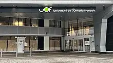 The Université de l’Ontario français (abbreviated as UOF; lit. 'University of French Ontario')[note 1] is a French-language public university in Toronto, Ontario, Canada. The university campus is situated in the East Bayfront neighbourhood of downtown Toronto, near the Toronto waterfront.