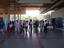 The university houses 15 residential halls (13 in-campus, 2 off-campus in Kachi), each divided by four lanes A, B, C and D (Informally named after bus routes). Many residential halls have their own basic facilities, such as a food court, student lounge and laundry services. Currently Petronas Student Residential Hall and TM Student Residential Hall (UUM labels their residential halls by names of corporations, initially via numbering system) are designated as disabled-friendly Student Residential Halls with several purposely-modified rooms.[17] The residential hall administration and Student Development and Leadership Committee (Jawatankuasa Pembangunan dan Kepimpinan Siswa, JKPS) were initially separate for each residential halls, but later merged among two administrations each with the exception of the residential halls in Kachi area. There are several residential halls that are reserved for students who take particular courses, based on accessibility.