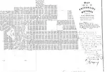 The area was founded in 1888.[2] The name "University" (both for the neighborhood and nearby University Avenue) derives from a plan, originally proposed during the land boom of the 1880s, to build a branch of the University of Southern California in the area.[3] The plan fell through, and the tract of land intended for the university was later used for the State Normal School (predecessor to San Diego State College). The headquarters of San Diego Unified School District currently occupies the site, near the corner of El Cajon and Park boulevards.