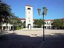 University High School's main campus is designed in a square architectural layout with a courtyard in the middle, with classrooms are located in buildings surrounding the main plaza. Along with this, the main campus includes the 25th building (a separate two-story building, built in 2011) and two rows of portables located at both west and east ends of the school. The East or Innovation Campus (formerly the Freshman Campus) is located across the street from the Main Campus and is predominantly unused due to plans to tear the campus down. Nonetheless, many of the East Campus's remaining portables and cafeteria are still of use to the school and students. University High School's campus's design differs greatly from other OCPS High Schools.