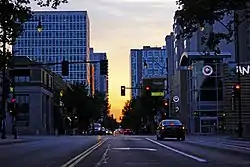 In 1998, the Hallene Gateway Plaza was dedicated. The Plaza features the original sandstone portal of University Hall, which was originally the fourth building on campus.[29] In recent years, state support has declined from 4.5% of the state's tax appropriations in 1980 to 2.28% in 2011, a nearly 50% decline.[35] As a result, the university's budget has shifted away from relying on state support with nearly 84% of the budget coming from other sources in 2012.[36]