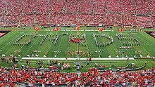 For over 80 years the Cardinal Marching Band has proudly represented the University of Louisville as the most visible ensemble of the School of Music, performing live for over half a million spectators each year.[5] Creating vibrant game day traditions for Cardinal fans is at the core of the CMB, which performs at all home football games, select away games, and all bowl games.