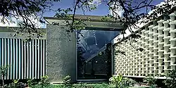 The program for the project required a substantial expansion of the library and the faculty offices area, as well as construction of new facilities for the legal aid clinic and an updating of the infrastructure. The new structures were joined to the original building, preserving the integrity of the whole without concealing the individual character of each unit. Together, the reception and security areas of the library form a great open space where routes through the library converge. Visually, this area opens onto the exterior through a tall glass façade, which floods the interior with natural light, while from the exterior Klumb's original façade is reflected. This articulates the union of the old structure with the new library and maintains the continuity between the exterior and the interior, a constant in Klumb's architectural works.[20]