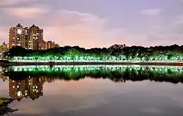 Upvan (or Upavan) Lake is located in Thane in the Indian state of Maharashtra.[1] It is known for hosting the Sanskruti Arts Festival.[2] Here one can also view thousands of Ganpati idols which are brought here for immersion on final day of Ganeshotsav. It was founded and reconstructed by J.K. Singhania for water supply. Singhania also constructed the lord Ganesha's temple at Upvan lake. The lake is located near Gawand Baug, Shivai Nagar, Ganesh Nagar, Vasant Vihar and Vartak nagar. This is one of the recreational areas for people who live in Thane. It is one of the biggest lakes in Thane, surrounded by Yeoor Hills, and lies in the Pokhran-II area. One of the eco friendly lake of city, Upvan Lake is regarded as Thane's ‘lover's paradise’.[3] Upvan lake forms a junction of the Pokhran I and Pokhran II roads. Once, the major source of water for the entire Thane city, Upvan lake is now used primarily for recreation. The official residence of the Mayor of Thane Municipal Corporation lies adjacent to the lake.[4][5]