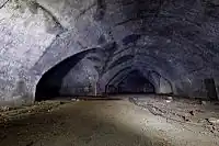 Hill 60 bunker. On the right is a corridor leading to the bunker complex, and on the left is the "mushroom tunnel".