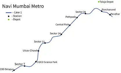 Navi Mumbai Metro Navi Mumbai Maharashtra 1[61] 11[61] 11.10 km