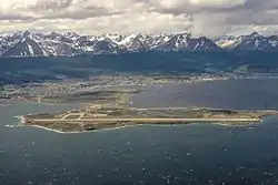 The airport is on a peninsula extending south into the Beagle Channel, and all approaches and departures are over the water.