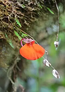 Utricularia campbelliana is a small epiphytic, perennial carnivorous plant that belongs to the genus Utricularia. U. campbelliana is endemic to northern South America, where it is found in Guyana and Venezuela and most likely also Brazil, though no positive records exist from that country. It was originally published and described by Daniel Oliver in 1887. It is named in honor of William Hunter Campbell, an attorney and amateur botanist who lived in Georgetown, Guyana. Its habitat is reported as being tree trunks, branches, and prop roots (mostly of Bonnetia species) at altitudes from 1,500 metres (4,921 ft) to 2,500 metres (8,202 ft), but has been found at altitudes as low as 690 metres (2,264 ft). It has been seen flowering between August and April. In his 1989 monograph on the genus, Peter Taylor noted that at least one specimen has been recorded as being visited by a hummingbird and it is likely that both U. campbelliana and U. quelchii are bird-pollinated.[2]