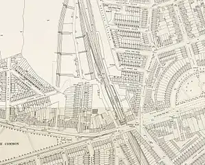 ![]() 1895 Map showing location of Uxbridge Road station close to Shepherd's Bush Green | |