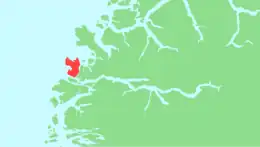 Vågsøy is an island in Kinn Municipality in Vestland county, Norway. The 59.1-square-kilometre (22.8 sq mi) island lies on the northern side of the mouth of the Nordfjorden, the sixth longest fjord in Norway. The Stadlandet peninsula lies to the north of the island, the islands of Silda and Barmøya and the mainland lie to the east of the island, the island of Husevågøy lies to the south (in the middle of the mouth of the Nordfjorden), and the open ocean lies to the west. Since the island lies along the open ocean, which can be rough, there are several lighthouses along the coastline of the island including: Hendanes Lighthouse, Kråkenes Lighthouse, and Skongenes Lighthouse. The highest point on the island is the 613-metre (2,011 ft) tall Veten.[1]