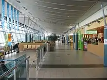 The civilian sector consists of two terminals—A and B—which combined are 20,000 square metres (220,000 sq ft), of which 13,500 square metres (145,000 sq ft) is passenger facilities. Terminal A is used for domestic traffic, while Terminal B is used for international services. The check-in facilities for domestic, international and charter are all fitted together at second floor at terminal A. The terminal contains an array of stores and dining places; these include a book store, convenience stores; clothing, crafts and cosmetics; diners, restaurants and pubs; and a 560 square metres (6,000 sq ft) duty-free store. The airport also has three automatic teller machines and a Radisson Blu hotel with 180 rooms and 11 conference rooms. Scandic Hell operates another hotel, the 400-room Rica Hell Hotel, within walking distance of the airport.[9] The airport administration is located in Terminal B, while the administration for airlines and handling agents is located in annexes of Terminal A.[10]