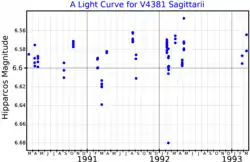 A light curve for V4381 Sagittarii, plotted from Hipparcos data[1]