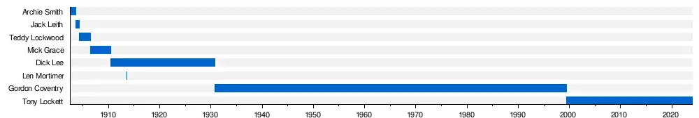 | Richmond | Jack Titus | 970 | 294 | 1926–1943 | [7] |