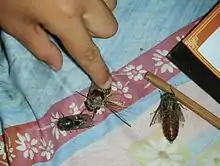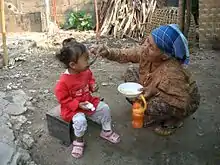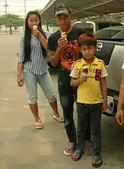 In the traditional Wa society monogamous marriage was the norm and there was sexual freedom for both men and women before marriage. The chewing of betel with areca nut was formerly also an important custom.[8] The Wa have different kinds of traditional dances. One important dance in their culture is accompanied by the beating of a large hollow wooden drum. This way of dancing, among other Wa dances[9] such as the hair dance[10] and festivals,[11] is being promoted as a tourist attraction by the Yunnan tourism authorities in China.[12]
