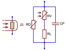 • RD – dark resistance, which is determined by the semiconductor and can range from a few MOhm to hundreds GOhm;[3][45]