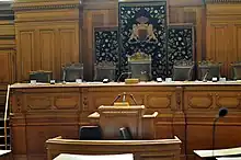 The embroidered hangings behind the President's chair in the Hamburger Bürgerschaft are by Valeska Röver