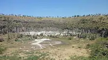 Over 30 inactive volcanic craters are located in Valle de Santiago, but only 7 of those are recognized, and protected as they have been declared a national monument. The seven volcanic craters are known as Siete Luminarias and include Cíntora, Hoyas de Santa Rosa, La Alberca, San Nicolás de Parangueo, Blanca, Estrada, Álvarez and Solís. Many of these craters naturally evolved into crater-lakes, and they would later become recreational spots. La Alberca, which translates to "the pool", was once an abundant lake that just over 40 years ago was filled with fresh water, but due to human activity has now dried up and been populated with cacti and shrubs. One of the biggest factors for the current state of these now dried crater lakes is the over extraction of groundwater for both water supply and irrigation. [3] The government has banned groundwater extraction and they are making various efforts to conserve the condition of these seven craters and prevent further damage. Since the Siete Luminarias are essential for agriculture and wildlife, there is a large amount of effort being pushed towards their preservation.[3]