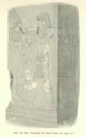 His son and successor, Seti I's tomb KV17 (also known as Belzoni's tomb, the tomb of Apis, or the tomb of Psammis, son of Necho), is usually regarded as the finest tomb in the valley. It has extensive relief work and paintings. When it was rediscovered by Belzoni in 1817, he referred to it as "a fortunate day."[83]
