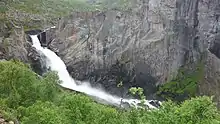 ![]() Valursfossen, seen from viewpoint at end of marked hiking track. | |