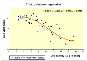 with Y the yield, X the salt concentration of the soil, while A, B, C and D are constants to be determined by the regression.